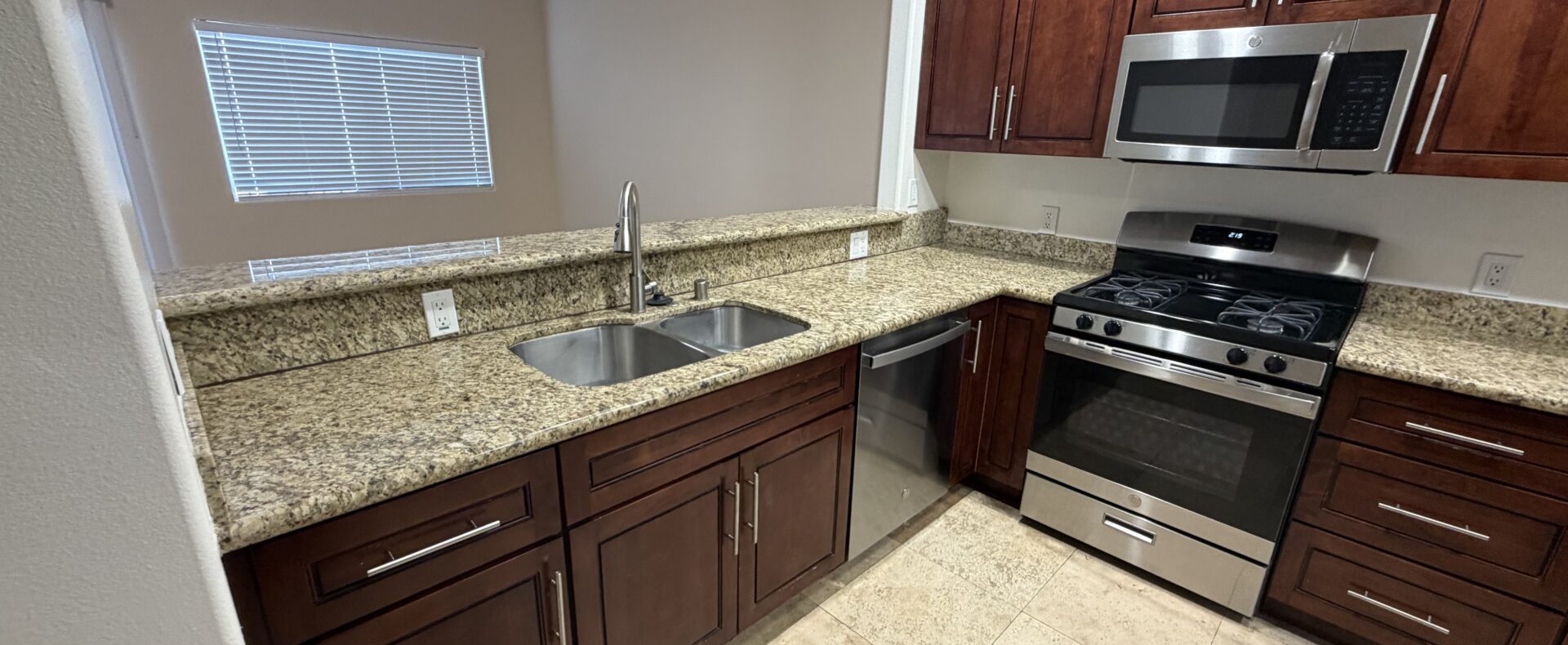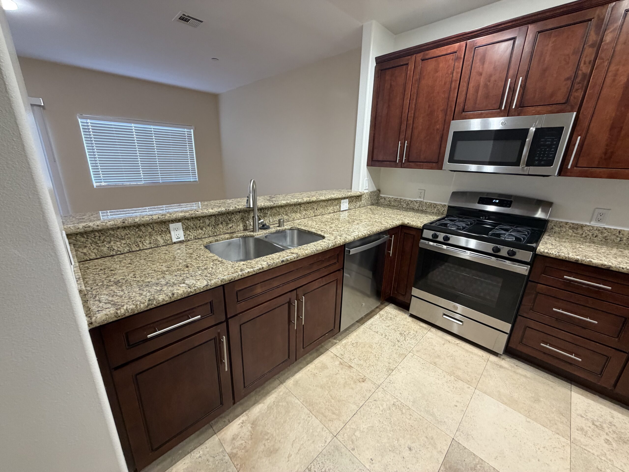 – stainless steel Stove – stainless steel Microwave – refrigerator – granite counter tops in kitchen and bathrooms – hard floor – Garbage Disposal – Screen, – Gated Garage – office space – laundry hook up , gated building , attached garage for 2 car , Central AC